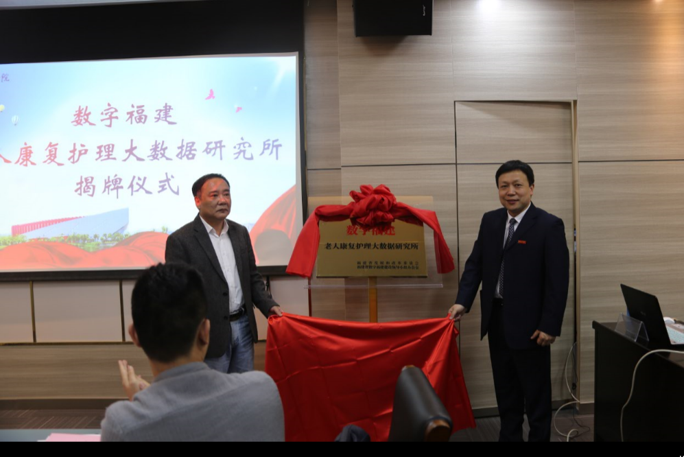4月9日,数字福建老人康复护理行业大数据研究所揭牌仪式在我校举行。我校副校长颜桂炀,宁德市发展和改革委员会副调研员陆浩、龙岩学院信息工程学院院长张凌、三明学院信息工程学院副院长沈绍俊、闽东卫校校长缪建荣、宁德市医院院长陈子春、各公司代表,以及我校科研处、信息与机电工程学院相关负责人、教师代表等出席揭牌仪式。
