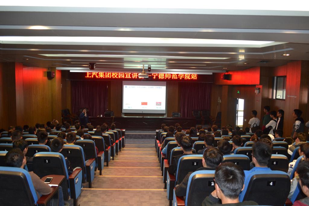 宁德市人力资源与社会保障局、宁德市经信委相关领导及我校学生处负责人、信息与机电工程学院领导一同参加了宣讲会。在宣讲会正式开始前,副校长颜桂炀接见了上汽集团人力资源部总监助理赵明钧等宣讲团成员。