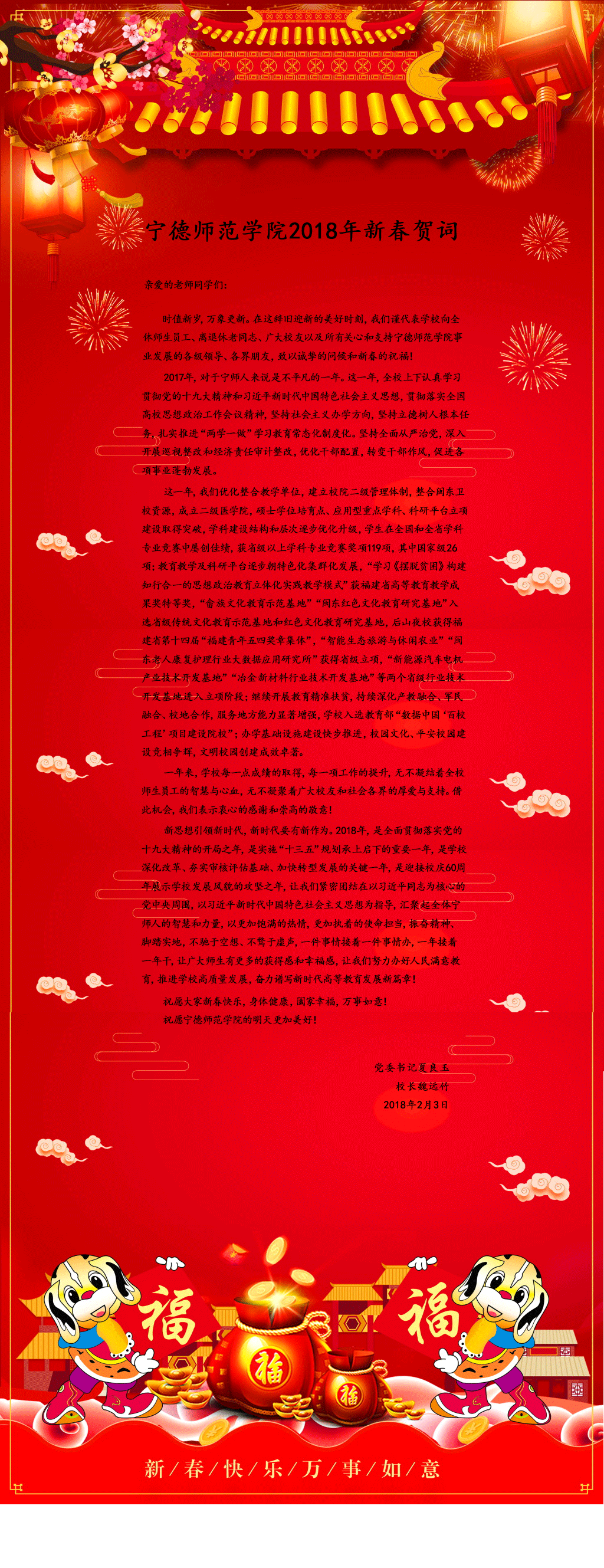 宁德师范学院2018年新春贺词