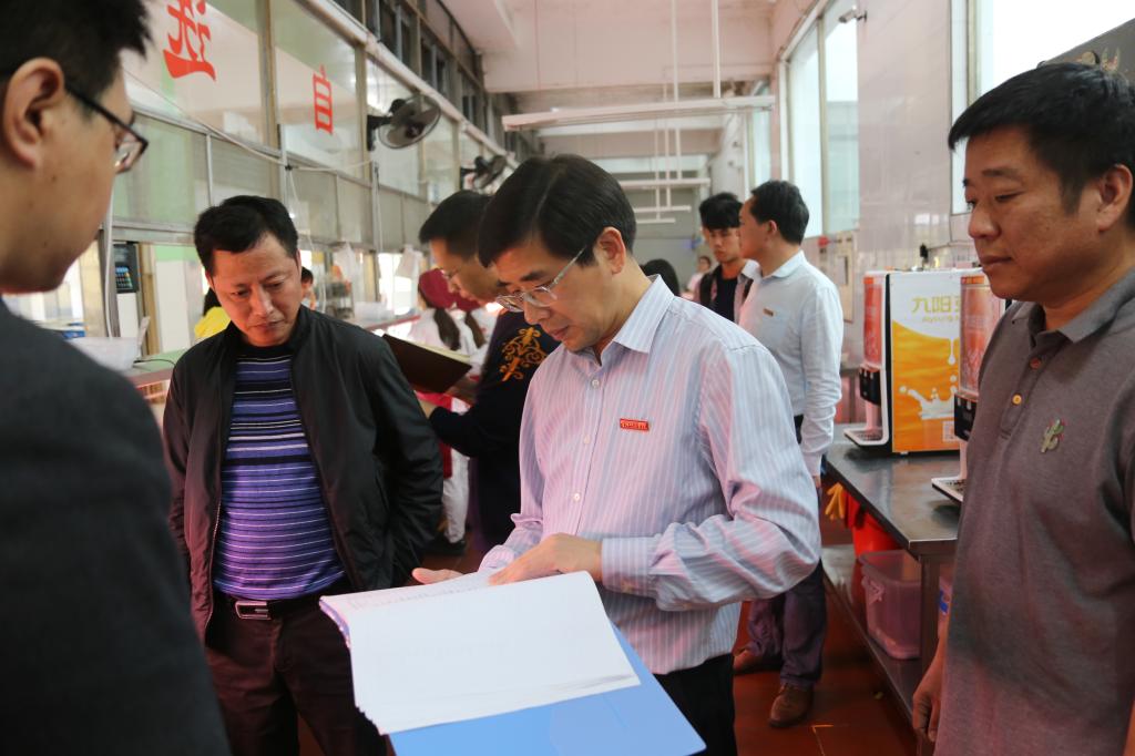 4月10日、27日,校长魏远竹带领党政办、学工处、校团委、资产后勤处等部门负责人先后深入东侨校区和蕉城校区食堂检查食品安全工作。魏远竹一行深入食堂后厨操作间,对食品存储留样记录、食材货源、加工等具体操作环节,以及消毒间和原材料仓库等场所进行了全面细致地检查,现场认真听取膳食委员会学生的意见反馈,并就相关具体问题与食堂管理人员进行深入交流。