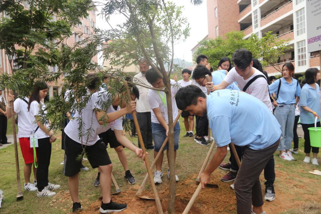 在学校体育馆,交流团一行饶有兴致地观看了舞龙舞狮、武术、太极拳等表演,与我校学生进行了篮球和羽毛球友谊赛;随后来到图书馆阅览室,观看了畲歌演唱,亲身参与体验了茶艺表演、书法展示、剪纸展示等,双方成员还分别进行了才艺交流展示。最后,交流团成员与我校学生一起植树,并挂牌“香港福建中学校友会·宁德师院共建林”。
