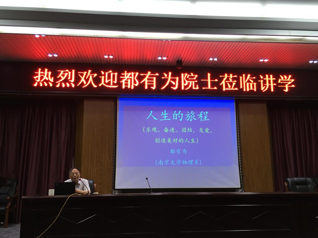 都有为教授以“人生的旅程”为题,从人类社会科学发展史出发,阐明了成功需要有百折不挠、迎难而上的奋进精神,他鼓励大家乐观、奋进、团结,友爱,创造美好的人生。他强调,青年是最具创新活力,也是创新能力最强的时期,希望青年师生勤奋刻苦,不畏挫折,把握住人生关键的转折点,抓住机遇,自强不息,笑傲人生。化学与材料学院100多名师生听取报告会。