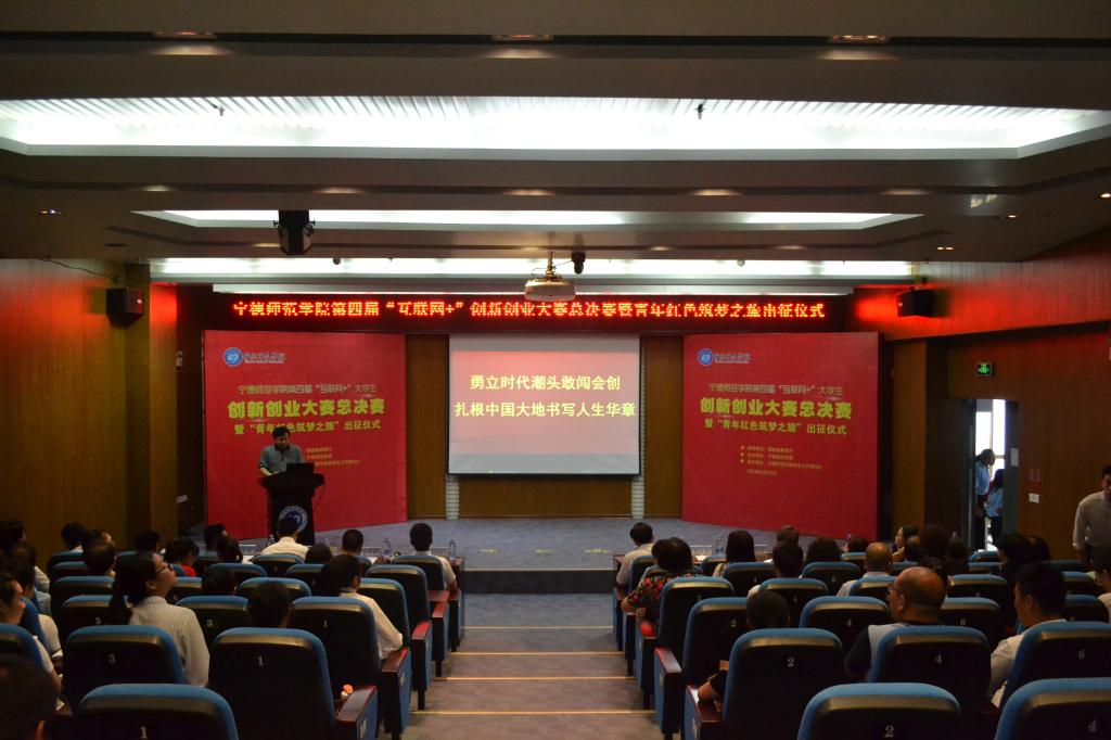 6月20日,宁德师范学院第四届“互联网+”大学生创新创业大赛决赛暨“青年红色筑梦之旅”出征仪式在行政楼三楼报告厅隆重举行。中国高校创新创业孵化器联盟理事,天使投资人,教育部中国“互联网+”大学生创新创业大赛专家委员会委员庄岩;红袍天使投资创始人董事长曹明浩;福建省互联网创业促进会导师,福建省赛金奖项目指导老师郭清;学友共创(福建)孵化器管理服务有限公司总经理张银福;教育部万名优秀创新创业导师,福建省互联网经济促进会专家顾问陈俊等嘉宾受邀担任本次评委。校长魏远竹,副校长颜桂炀,学生工作部(处)、教务处、科研处、团委职能部门负责人,各学院党政领导,入围决赛的团队成员和项目指导老师等共150多人参加了决赛路演活动。副校长颜桂炀主持了有关活动。