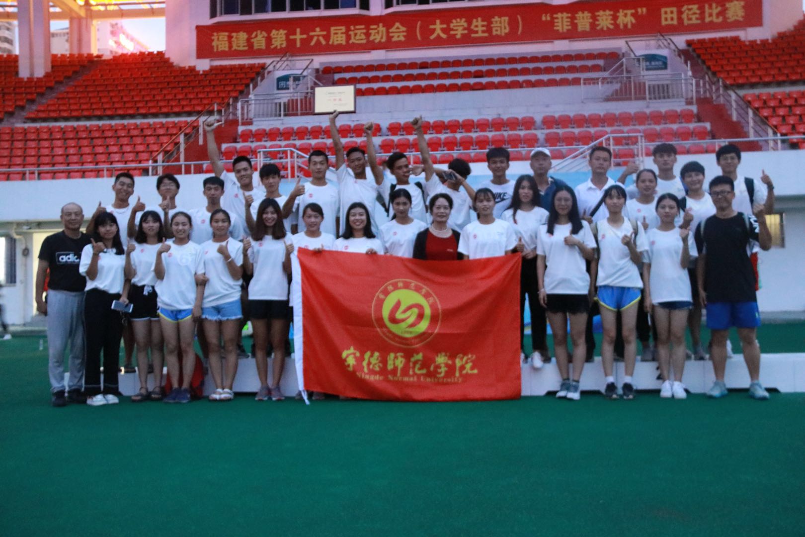 7月6日,福建省第十六届运动会(大学生部)田径比赛在宁德市体育中心闭幕,我校田径运动员积极进取、奋勇拼搏,以第二名的成绩获得乙组(体育组)团体一等奖,取得了我校大运会田径比赛的历史性突破。比赛期间,校党委书记夏良玉、校长魏远竹、副校长谢向东等校领导亲临比赛现场为运动员加油鼓励,亲临训练场对运动员和教练员进行亲切慰问。本次田径比赛,我校共有甲组、乙组30名运动员参赛,乙组15人中,有14人获得奖牌,其中,金牌1枚、银牌10枚、铜牌7枚;甲A组15人中,有13人进入10月份省运会决赛。