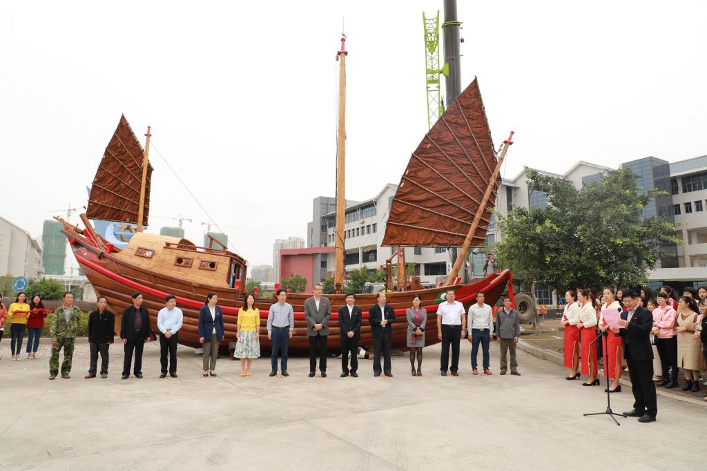 这艘由宁德蕉城区捐建的“水密隔舱福船”,是国家级非物质文化遗产代表性传承人刘细秀亲手制造的,将在我校梦龙湖永久陈列,成为我校“传播闽东之光”校园文化工程的一个重要景观,将福船文化和闽东之光传播到海内外。这艘承载着古代海洋文明和优秀文化遗产的有福之船,也将载着宁师人乘风破浪、坚定不移地驶向更加美好的明天,在新时代再谱新篇章,再创新辉煌!