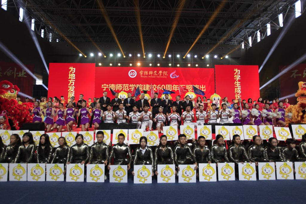 11月18日,我校在体育馆举行师生汇报演出献礼母校六十周年华诞。中国科学院院士谢联辉,中共宁德市委书记郭锡文,宁德市人民政府市长梁伟新,宁德市人大常委会主任金敏,宁德市政协主席兰斯琦,福州大学党委书记陈永正等领导受邀观看演出。校领导班子与来自各界的嘉宾、校友,以及我校师生代表共两千余人齐聚一堂,观看演出。