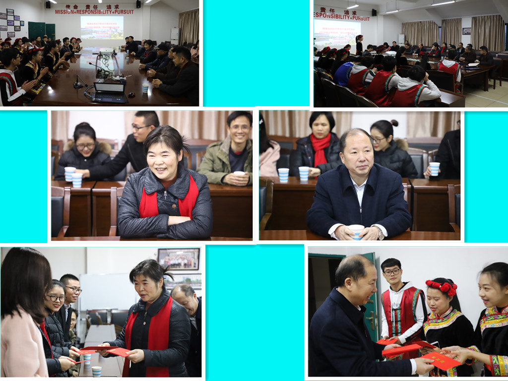 会上,语言与文化学院汇报了民族班、民族预科班的办学情况,畲族文化教育中心汇报了畲族文化教育中心研究情况,预科班教师代表、民族学生代表分别就民族班、民族预科班学生的学习生活情况作了汇报。兰秀珍对我校民族学生的培养工作表示满意,对语言与文化学院民族学生培养工作的特色和成效给予充分肯定。对民族学生提出殷切期望,希望民族学生努力学习,积极上进,学好本领,发挥特长,早日成才。同时,兰秀珍向民族预科班优秀教师和民族班、民族预科班学生代表送上慰问金,并通过他们向在我校辛勤工作学习的广大教育工作者和学生致以春节问候和祝福。